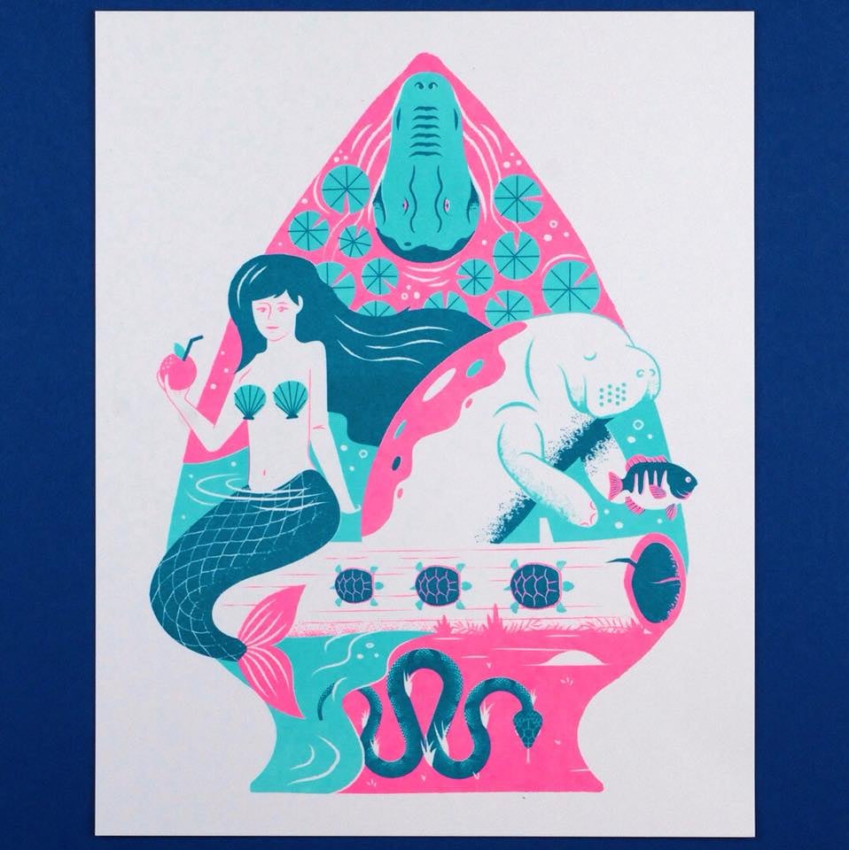 8.5x11 Risograph print of my Afterhours ATX poster. Printed by Risolve.